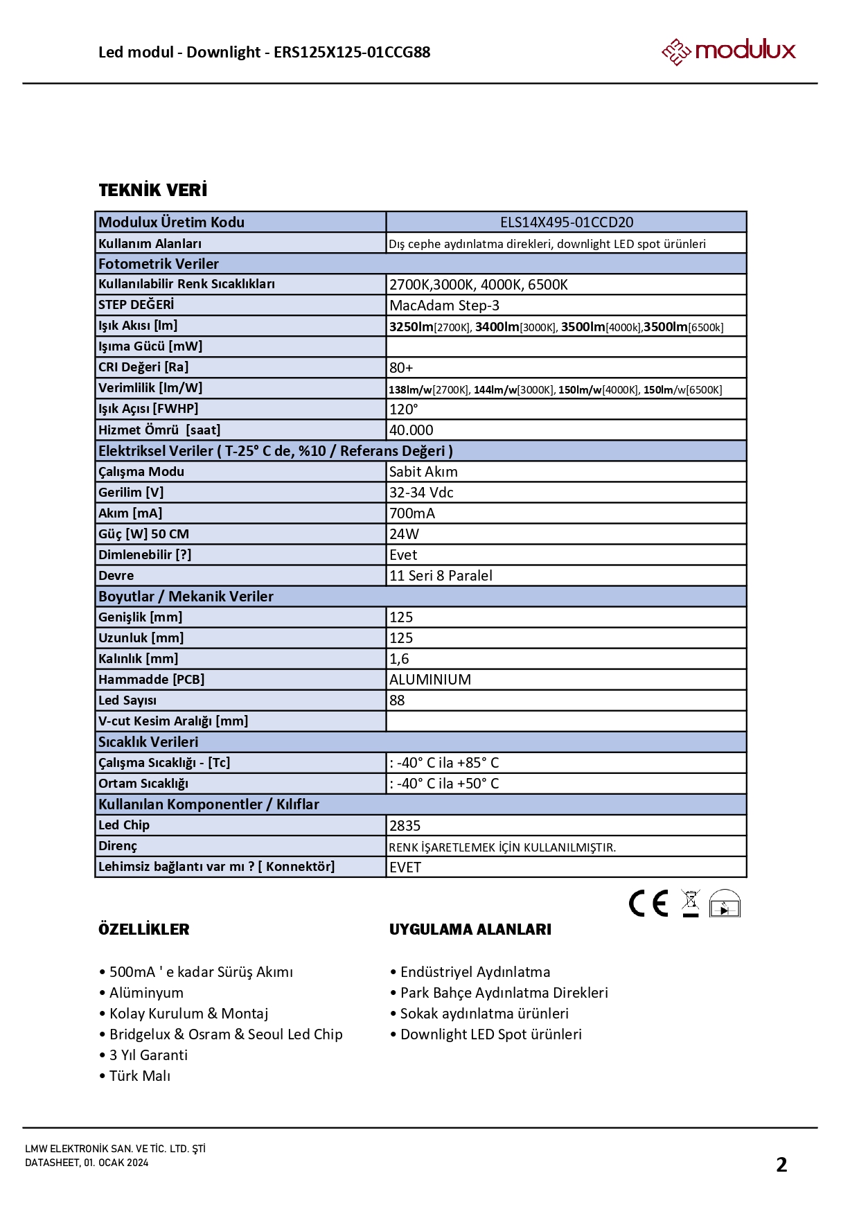 ERS125X125-01CCG88- 125 MM YUVARLAK DOWNLIGHT PCB 24W