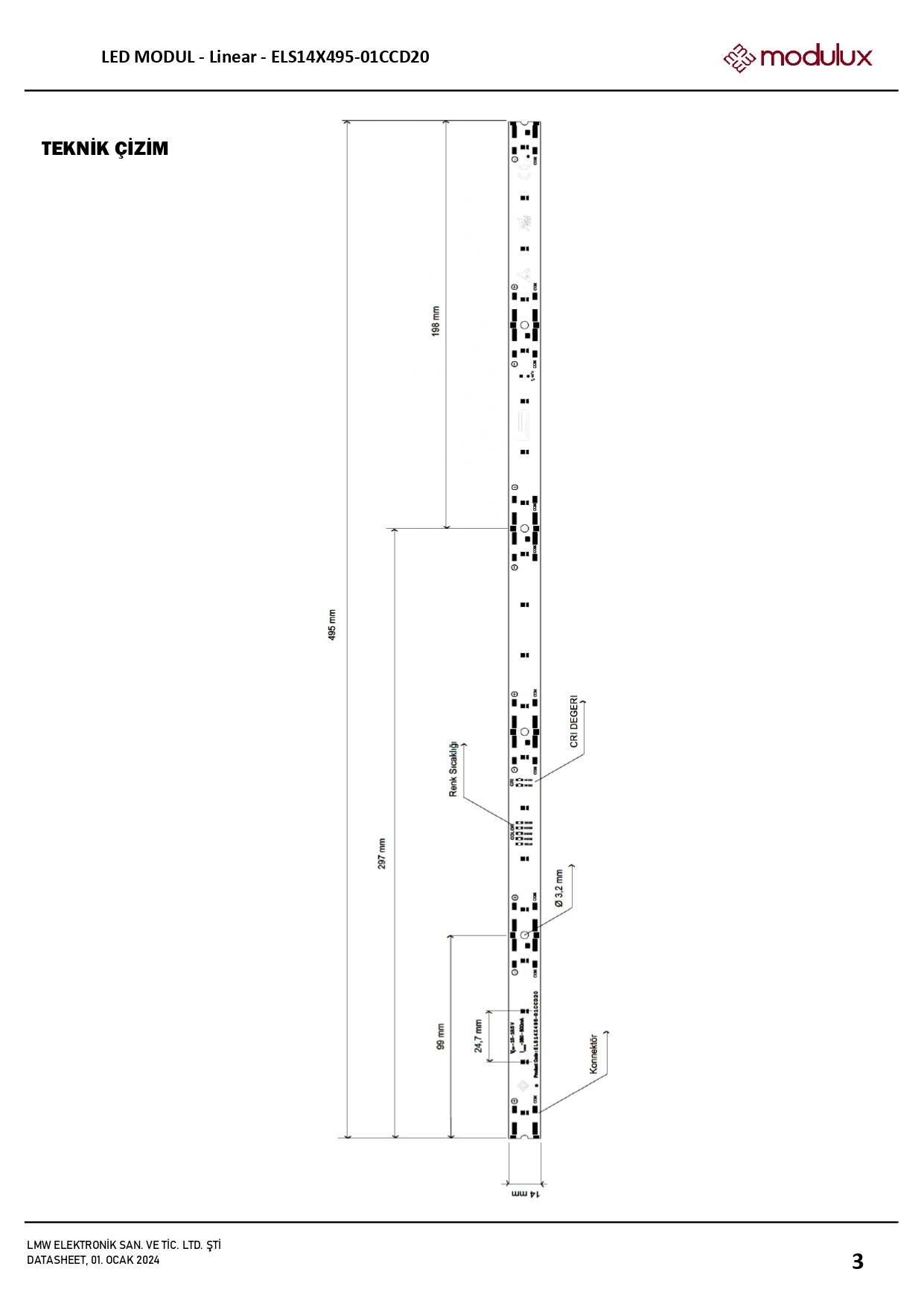 ELS14X495-01CCD20- 10,5 WATT / MT 350mA SABİT AKIM MODÜL & ÇUBUK LED