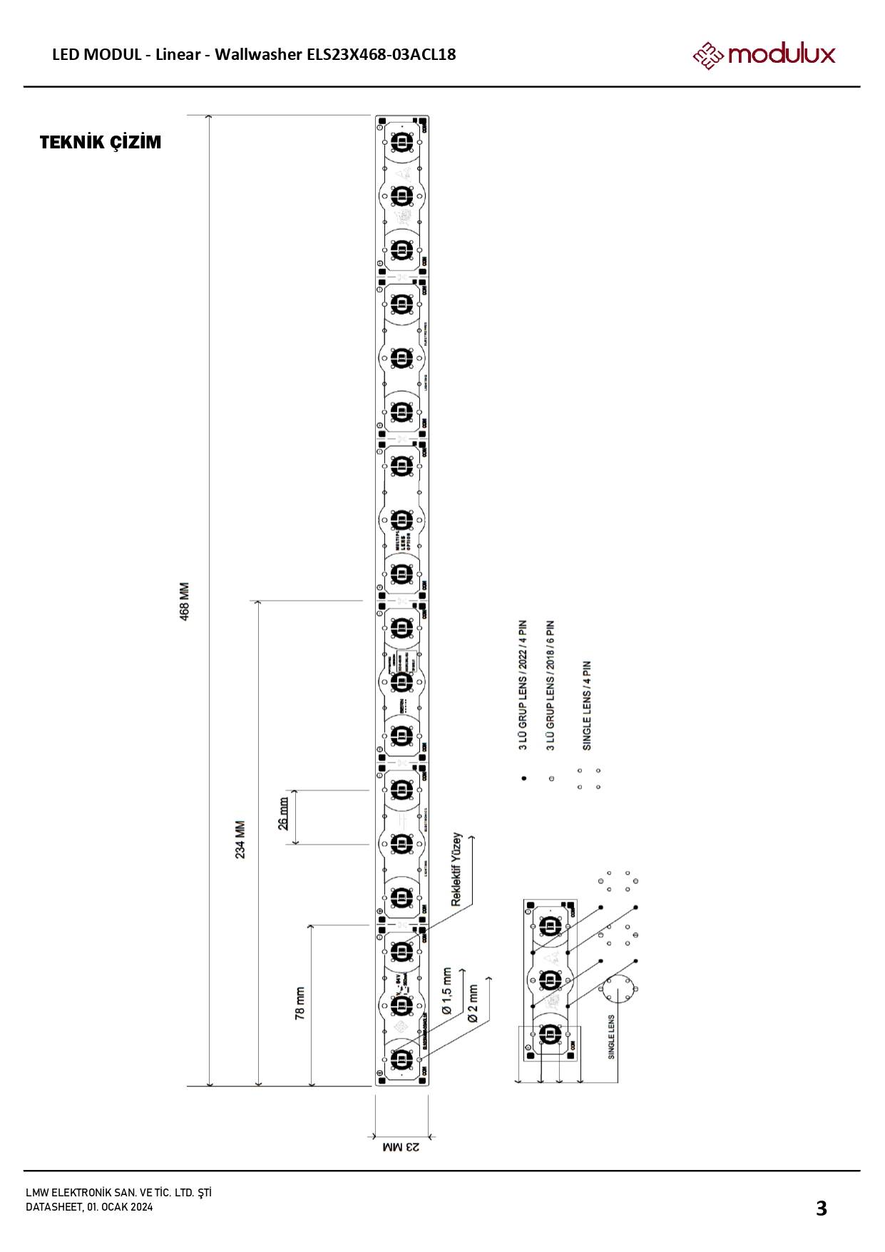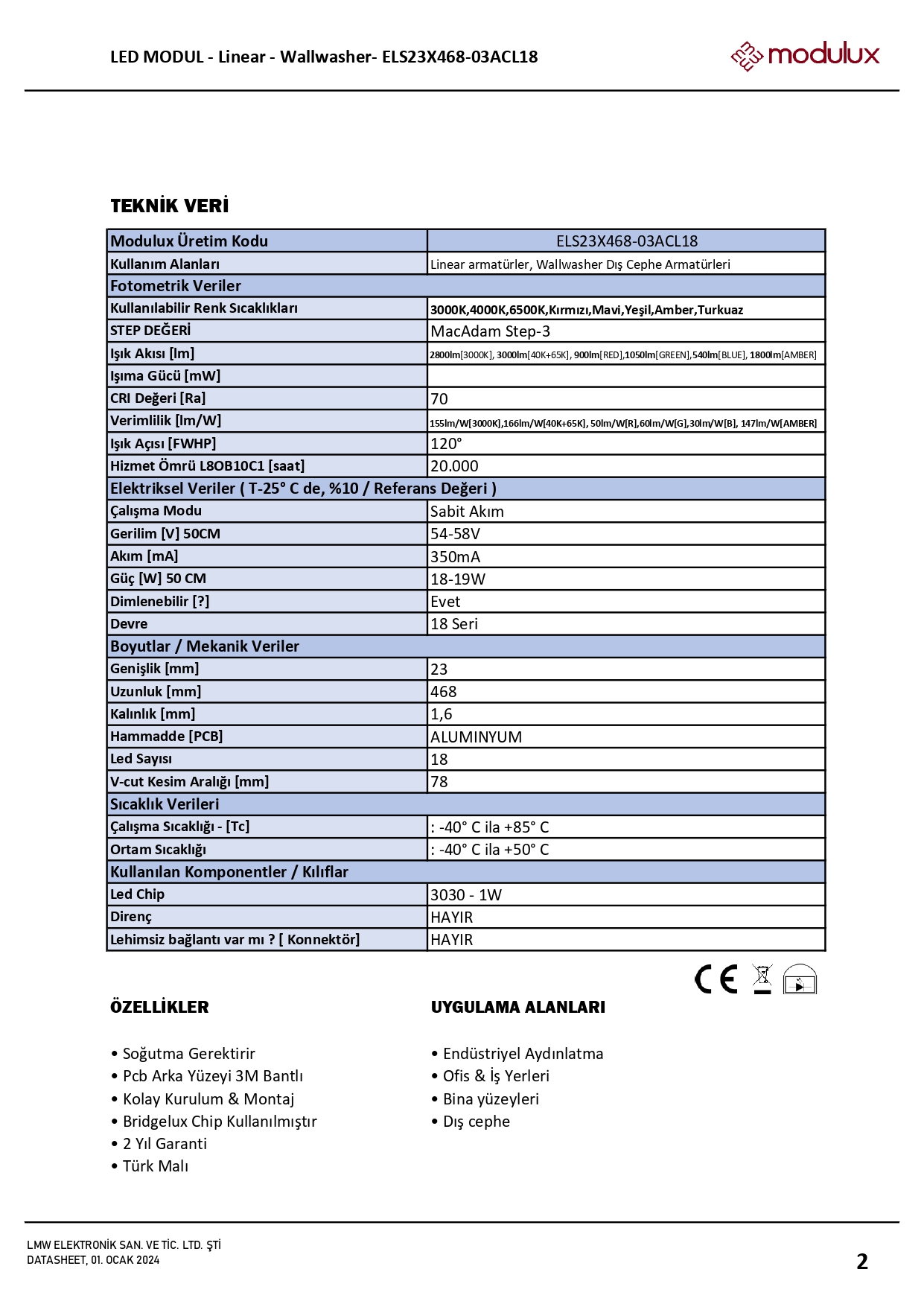 54V dc, 350mA (50cm) Sabit Akım Wallwasher Led Modul Datasheet için tıklayınız.